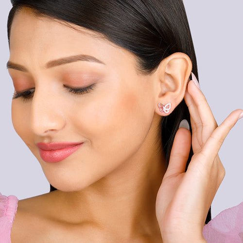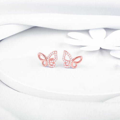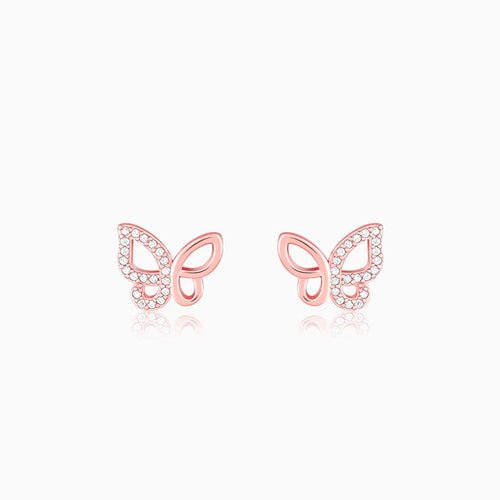 Rose Gold Zircon-Studded Butterfly Earrings